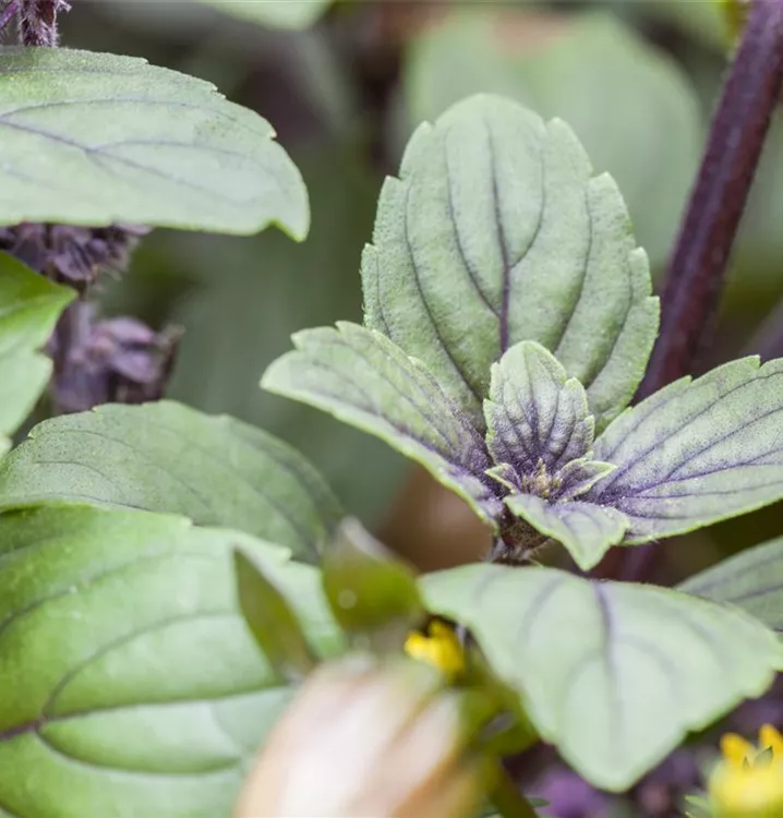 Zum Verzehr geeignet. Die mittelgrünen, gewellten Blätter sind eiförmig und überzeugen mit würzigem Geschmack.