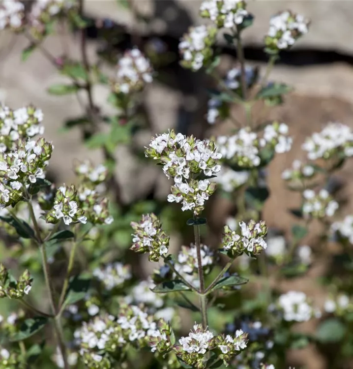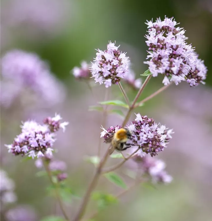 Der Oregano (Origanum vulgare) ist eine angenehm duftende Kräuterpflanze mit einem aromatischen, würzigen Geschmack. Seine mittelgrünen Blätter sind eiförmig, lanzettlich und gewellt, bewimpert. Für das optimale Wachstum des Oreganos werden ein sonniger Standort und durchlässiger, nährstoffreicher Boden benötigt.