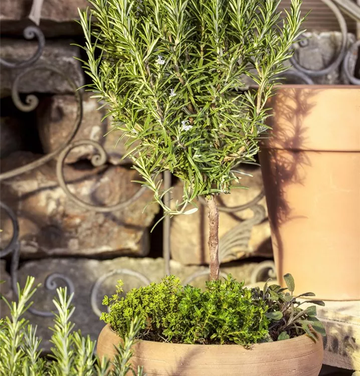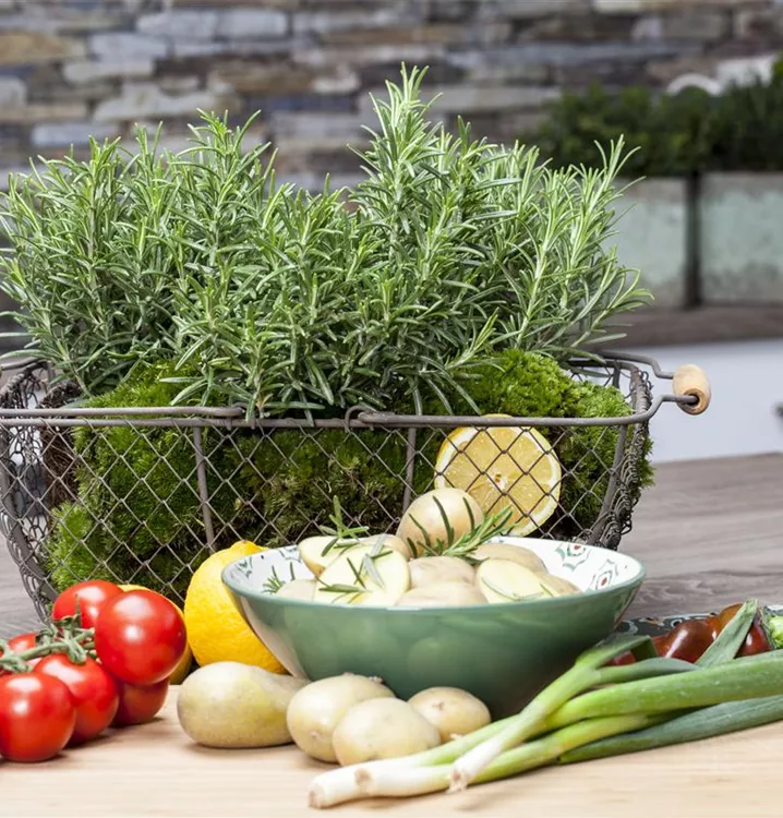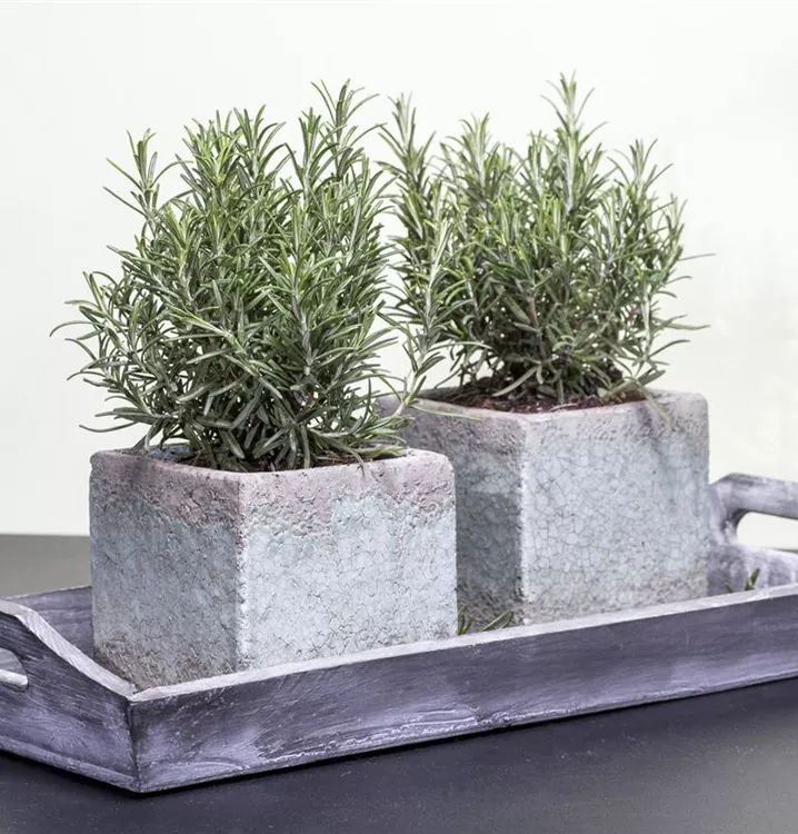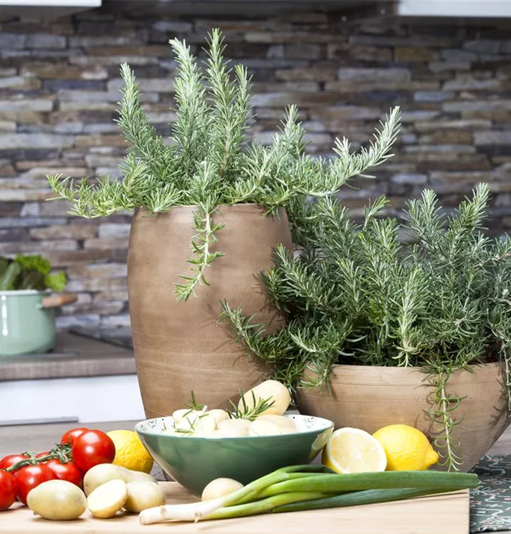 Der Rosmarin (Rosmarinus officinalis) ist eine angenehm duftende Kräuterpflanze mit einem aromatischen, würzigen Geschmack. Seine grau-grünen Blätter sind lanzettlich. Für das optimale Wachstum des Rosmarins werden ein sonniger Standort und durchlässiger, nährstoffreicher Boden benötigt.