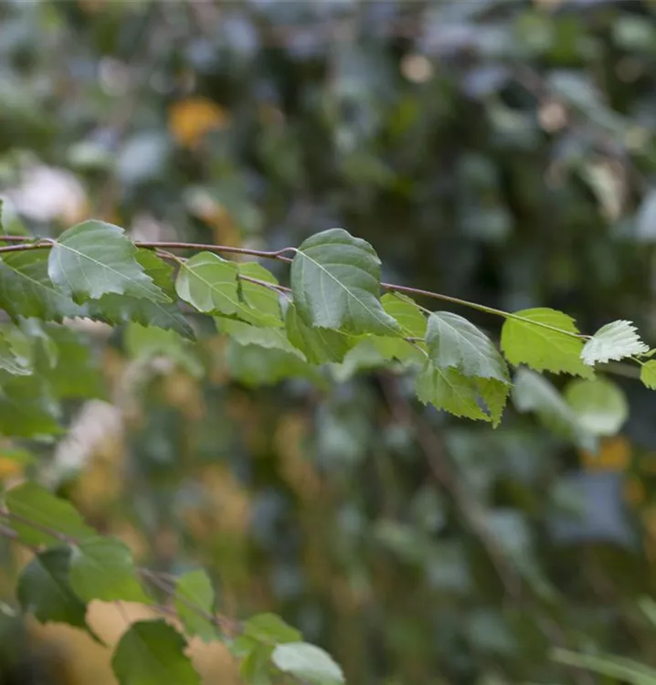 Die sommergrünen Blätter der Sandbirke sind hellgrün, dreieckig, rautenförmig, wechselständig, grob gesägt. Diese sind etwa 3 - 7 cm groß. Sandbirke zeigt sich leuchtend goldgelb im Herbst.