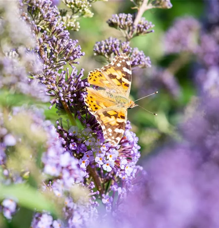 Die blauvioletten Blüten des Sommerflieder 'Empire Blue' erscheinen in Rispen von Juli bis Oktober. Diese werden etwa 20 - 30 cm groß und sind stark duftend.