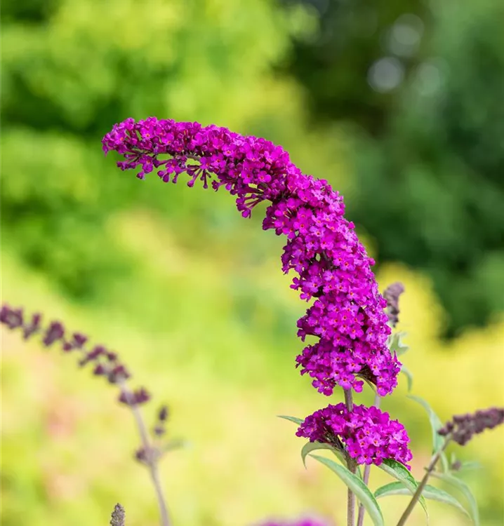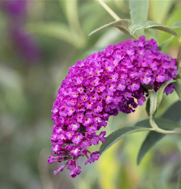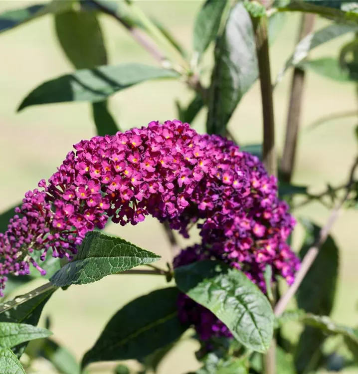 Die purpurroten Blüten des Sommerflieder 'Royal Red' erscheinen in Rispen von Juli bis Oktober. Diese werden etwa 30 - 50 cm groß und sind stark duftend.