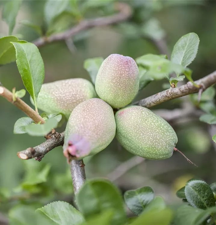 Besonders dekorativ sind die gelben, orangefarbenen, angenehm duftenden, birnenförmigen Früchte von Chaenomeles japonica. Diese erscheinen ab September.