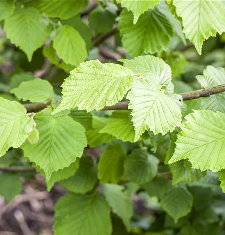 Die sommergrünen Blätter der Waldhasel sind mittelgrün, rundlich, wechselständig, gesägt. Diese sind etwa 6 - 10 cm groß. Waldhasel zeigt sich leuchtend orangegelb im Herbst.