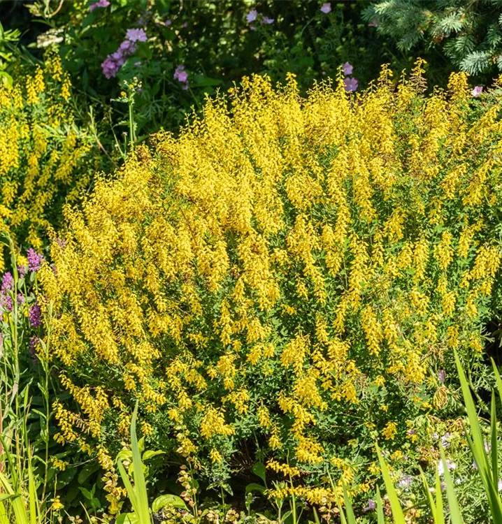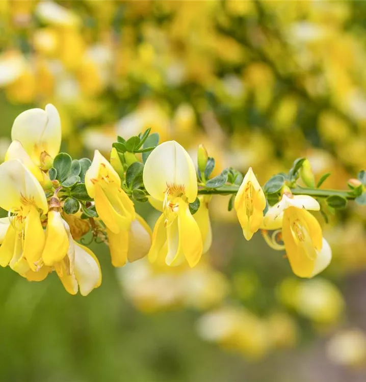 Die gelben, schmetterlingsförmigen Blüten erscheinen von Mai bis Juni. Diese sind angenehm duftend.