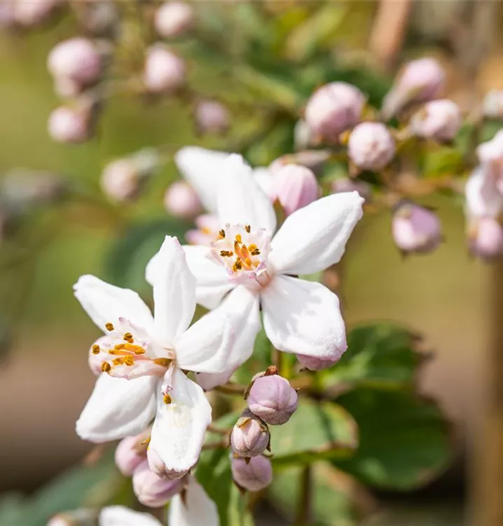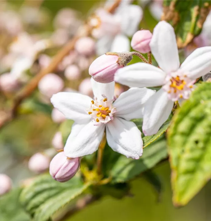 Die Rosendeutzie 'Mont Rose' weist eine gute Frosthärte auf.