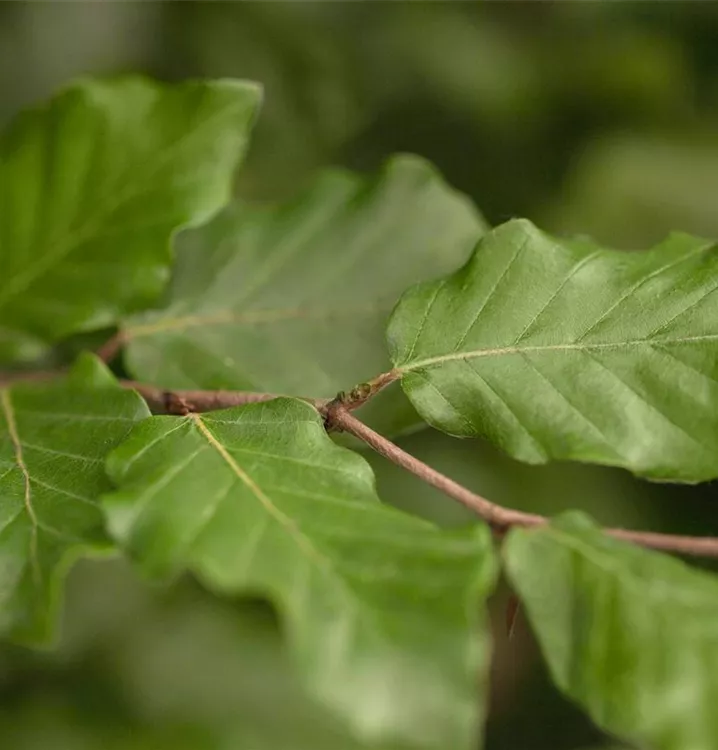 Die sommergrünen Blätter der Rotbuche sind mittelgrün, eiförmig, wechselständig, gewellt. Diese sind etwa 5 - 10 cm groß. Rotbuche zeigt sich leuchtend goldgelb im Herbst.