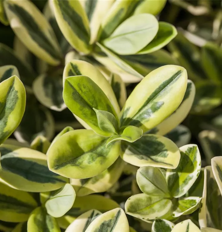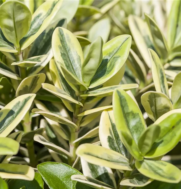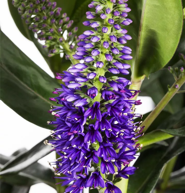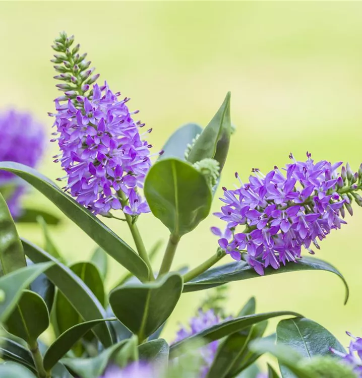 Die Strauchveronika (Hebe x andersonii) eine buschige Gartenpflanze, die, je nach Sorte, lippenförmige Blüten in verschiedenen Farben hervorbringt. An einem sonnigen bis halbschattigen Standort mit durchlässigem, nährstoffreichem Boden erreicht sie gewöhnlich eine Höhe von ca. 60 cm und wird ca. 50 cm breit.