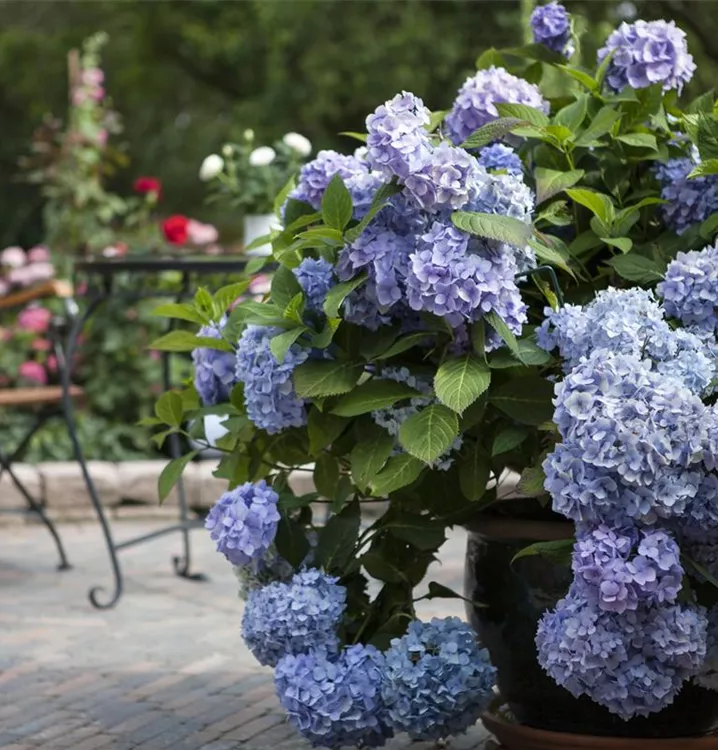 Blaublühende Hortensien werden im Laufe der Jahre oft nur mehr rosa blühen. Um dies zu verhindern, kann mit ‚Hortensienblau‘ nachgeholfen werden. Es enthält das für die Blaufärbung verantwortliche Aluminium.