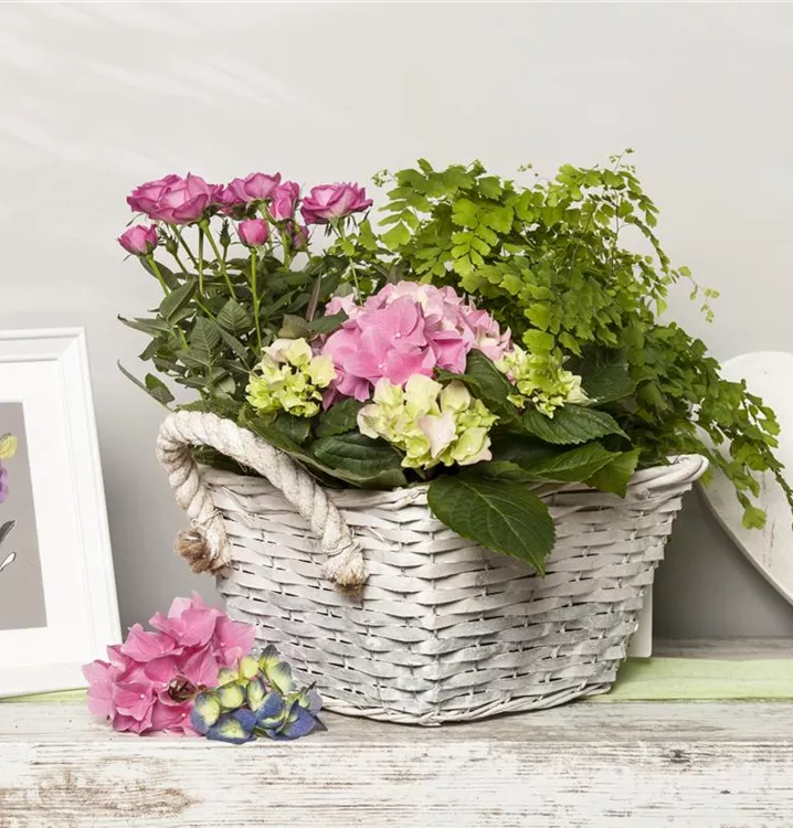 Die Bauernhortensie (Hydrangea macrophylla) ist ein buschiger, aufrechter Kleinstrauch, der rosafarbene, schalenförmige, in Dolden angeordnete Blüten hervorbringt. Sie erscheinen von Juni bis September. Zudem trägt die Bauernhortensie, eiförmige, mittelgrüne Blätter. An einem halbschattigen bis schattigen Standort mit humosem, schwachsaurem Boden erreicht sie gewöhnlich eine Höhe von ca. 1,5 m und wird ca. 1,5 m breit.