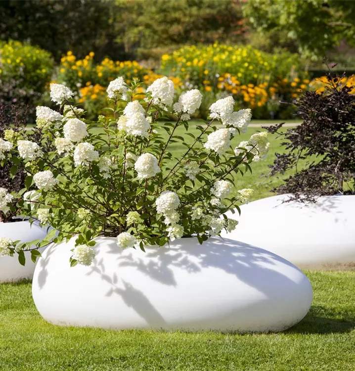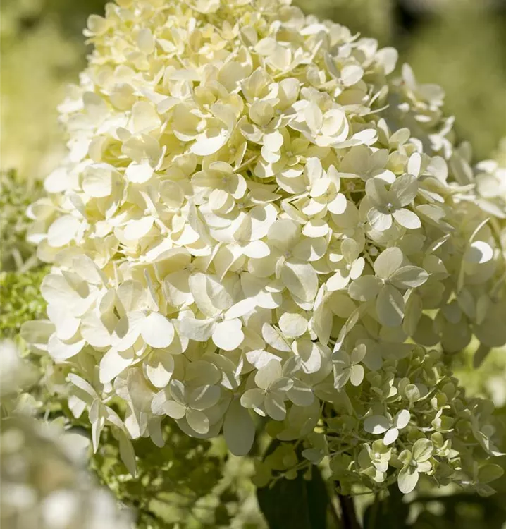 Die weißen Blüten der Rispenhortensie erscheinen in Rispen von Juli bis September. Diese sind angenehm duftend.