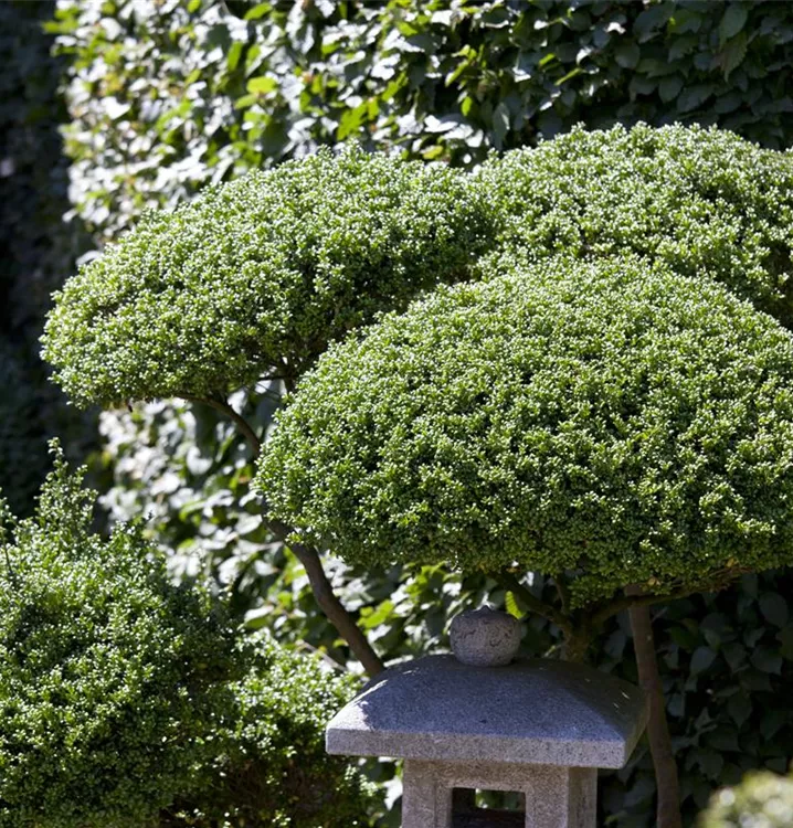 Die Japan-Stechpalme (Ilex crenata) ist ein aufrechter Strauch mit dekorativen, schwarzen Früchten, die sehr lange haften. Die Blüten erscheinen je nach Sorte in verschiedenen Farben.