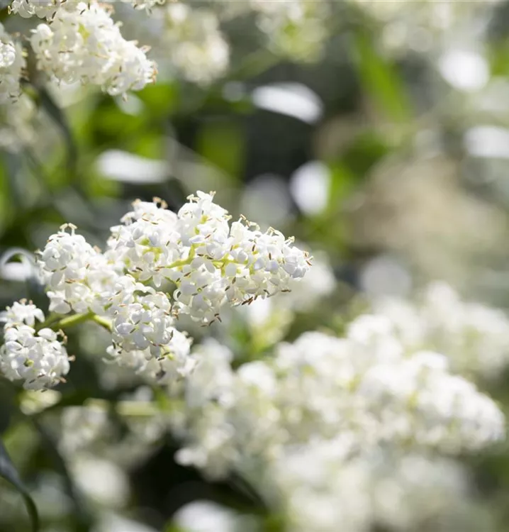 Die cremeweißen Blüten des Gemeinen Liguster erscheinen in Rispen von Juni bis Juli. Diese sind angenehm duftend.