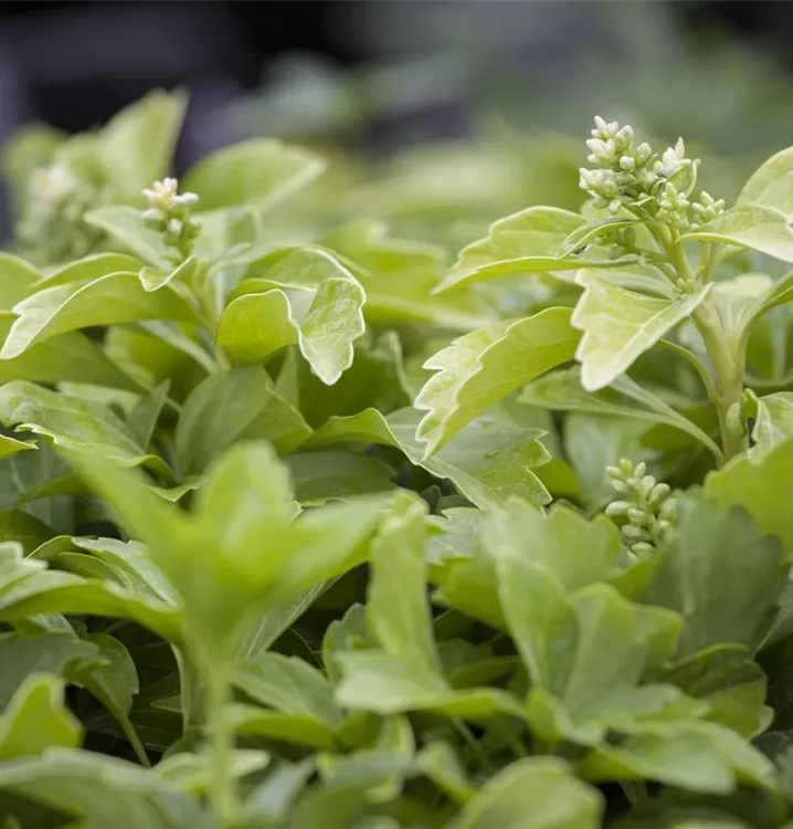 Das Dickmännchen (Pachysandra terminalis) ist ein ausläuferbildender, kriechender Halbstrauch, der cremeweiße, in Ähren angeordnete Blüten hervorbringt. Sie erscheinen von April bis Mai. Zudem trägt das Dickmännchen, eiförmige, dunkelgrüne Blätter. An einem halbschattigen bis schattigen Standort mit humosem, lockerem Boden erreicht es gewöhnlich eine Höhe von ca. 30 cm und wird ca. 50 cm breit.