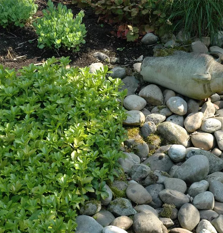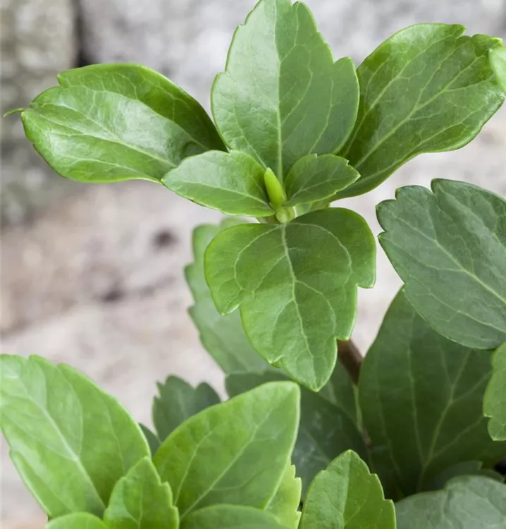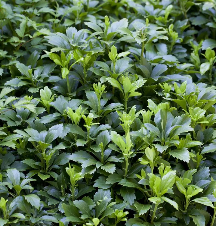 Pachysandra terminalis ist ein Flachwurzler und bildet, je nach Boden, ausladend verzweigte Wurzeln.