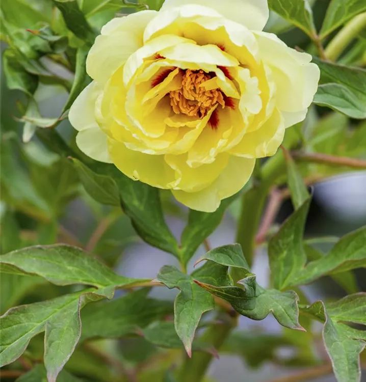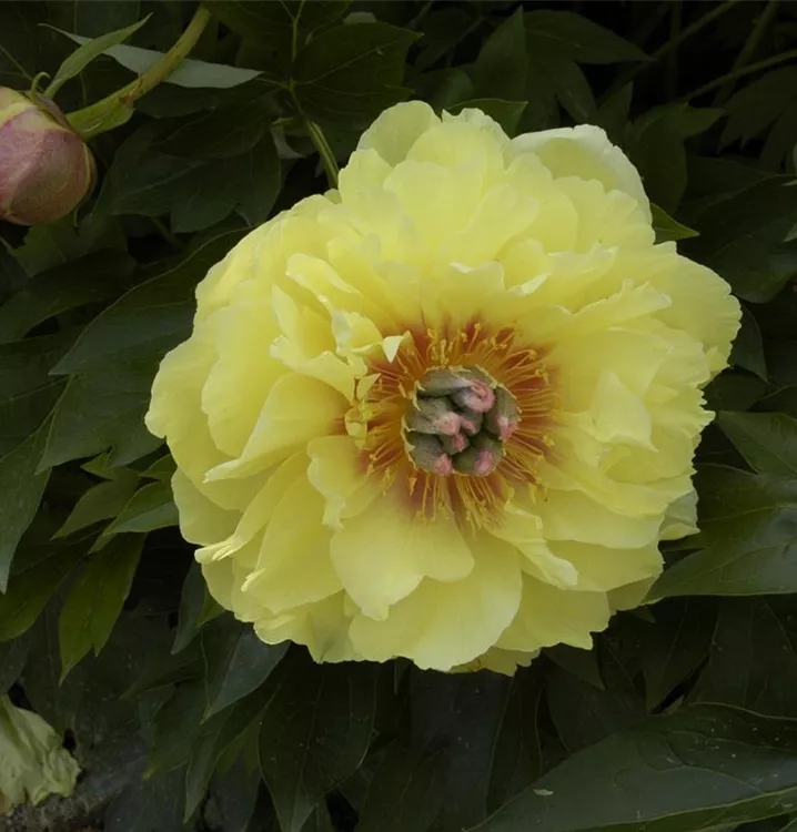 Paeonia x suffruticosa, gelb ist ein Flachwurzler.