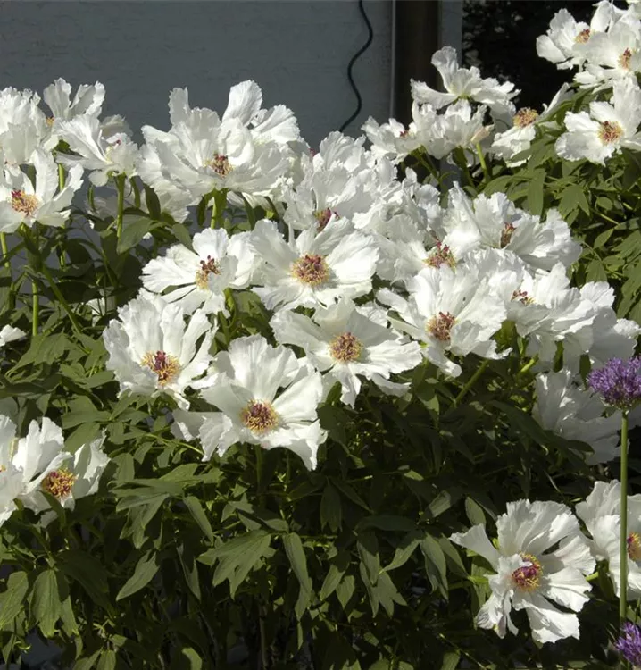 Paeonia x suffruticosa, weiß ist ein Flachwurzler.