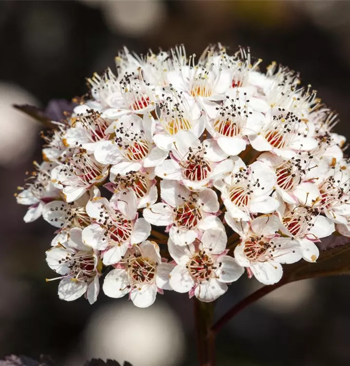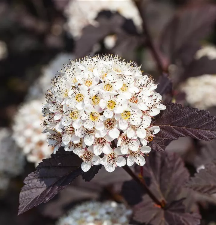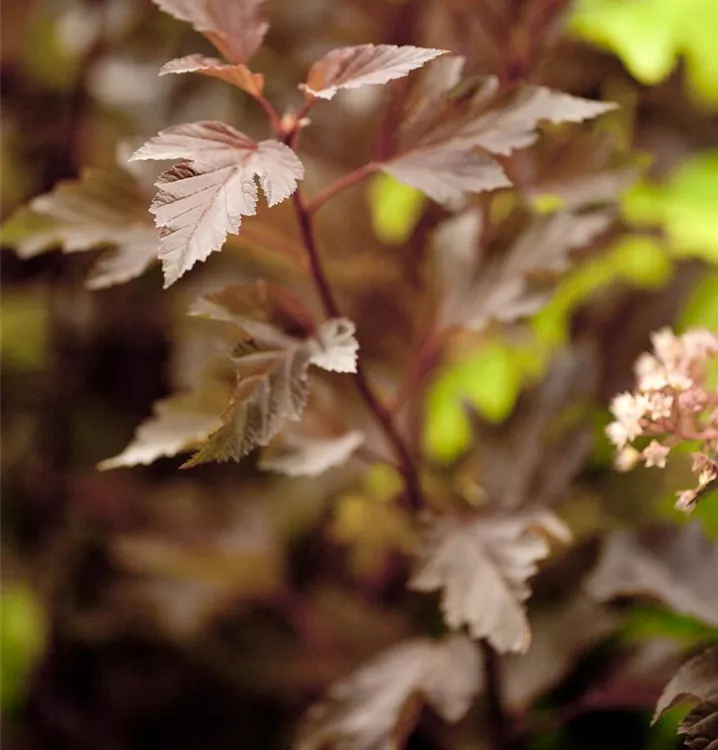 Die Fasanenspiere 'Summer Wine'® (Physocarpus opulifolius) ist ein buschiger, aufrechter, Kleinstrauch mit dekorativen sommergrünen, eiförmigen, dunkelroten Blättern.