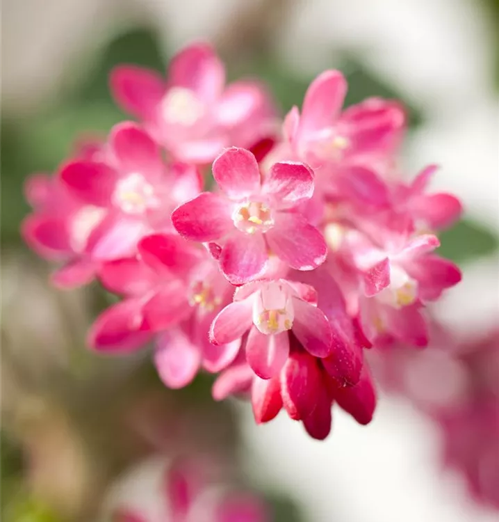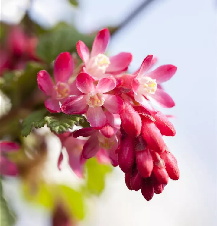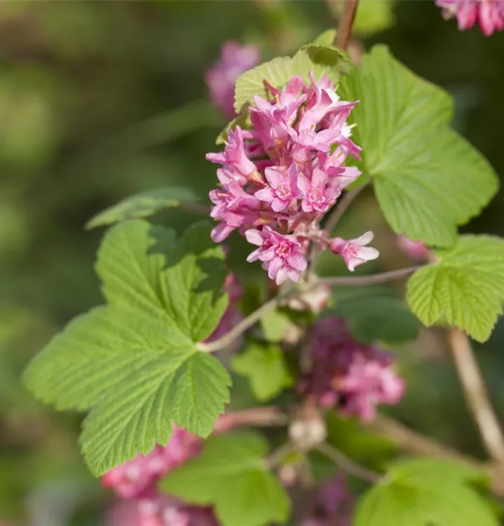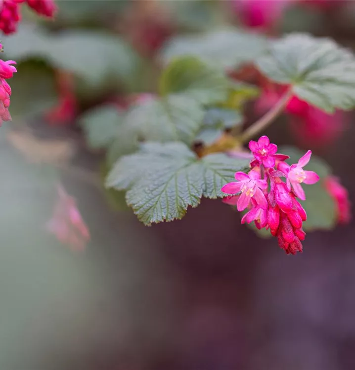 Die Blutjohannisbeere (Ribes sanguineum) ein aufrechter Großstrauch, der, je nach Sorte, Blüten in verschiedenen Farben hervorbringt. An einem sonnigen bis halbschattigen Standort mit durchlässigem Boden erreicht sie gewöhnlich eine Höhe von ca. 4 m und wird ca. 3 m breit.