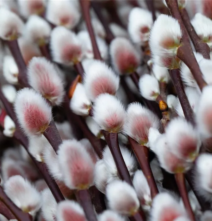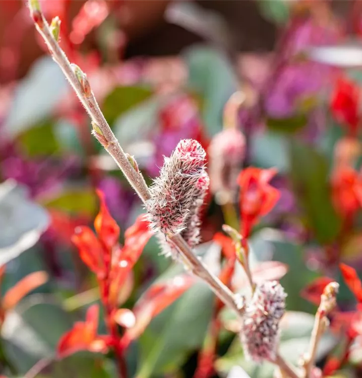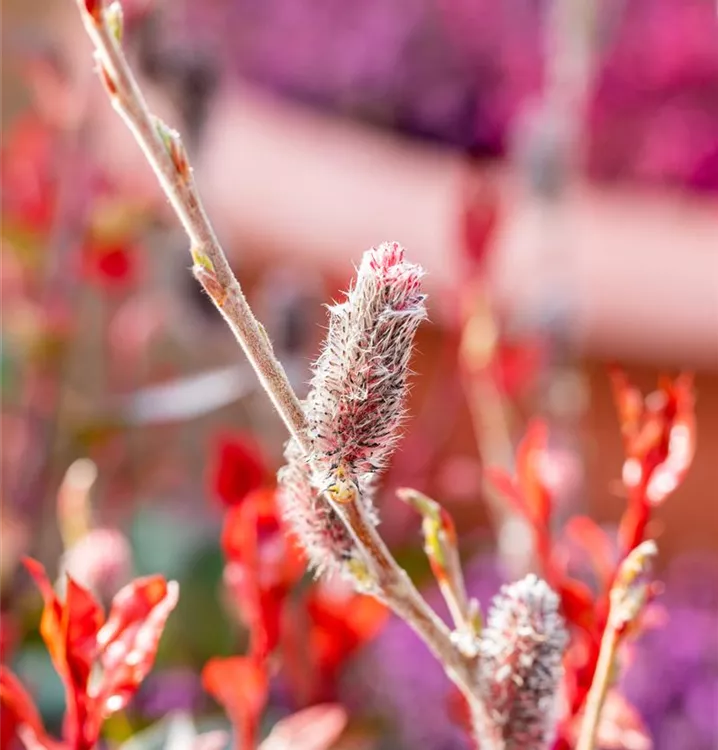 Die roten Blüten der Weide 'Rotkätzchen'® erscheinen in Kätzchen von Februar bis März.
