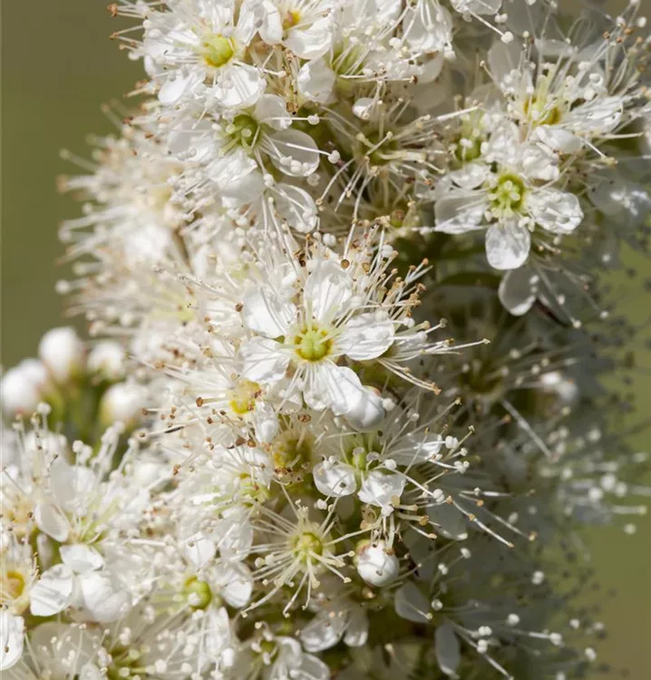 Die cremeweißen Blüten der Niedrigen Fiederspiere erscheinen in Rispen von Juni bis Juli.