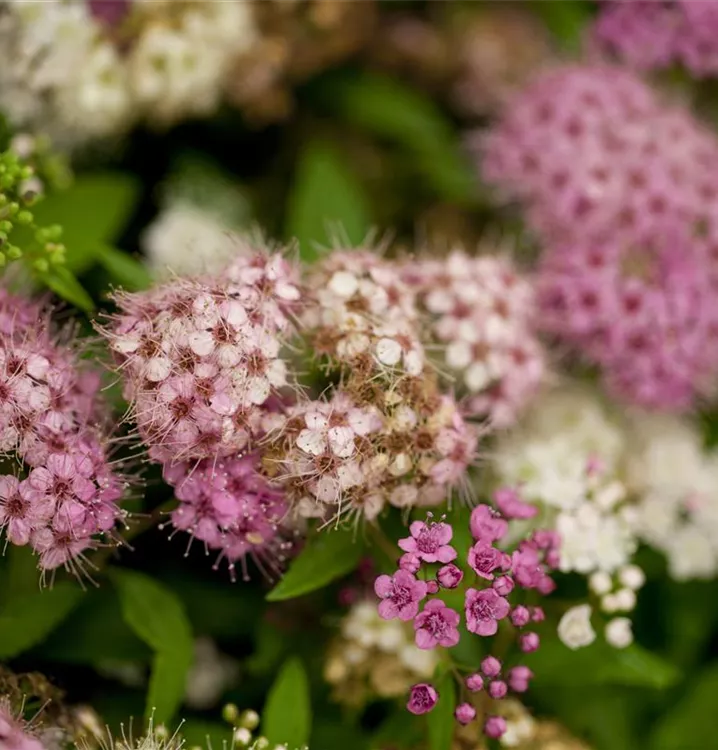 Die Sommerspiere (Spiraea japonica) ist ein kompakter Kleinstrauch, der hellrosafarbene Blüten hervorbringt. Sie erscheinen von Juni bis Juli. An einem sonnigen bis halbschattigen Standort mit durchlässigem, nährstoffreichem Boden erreicht sie gewöhnlich eine Höhe von ca. 60 cm und wird ca. 1 m breit.