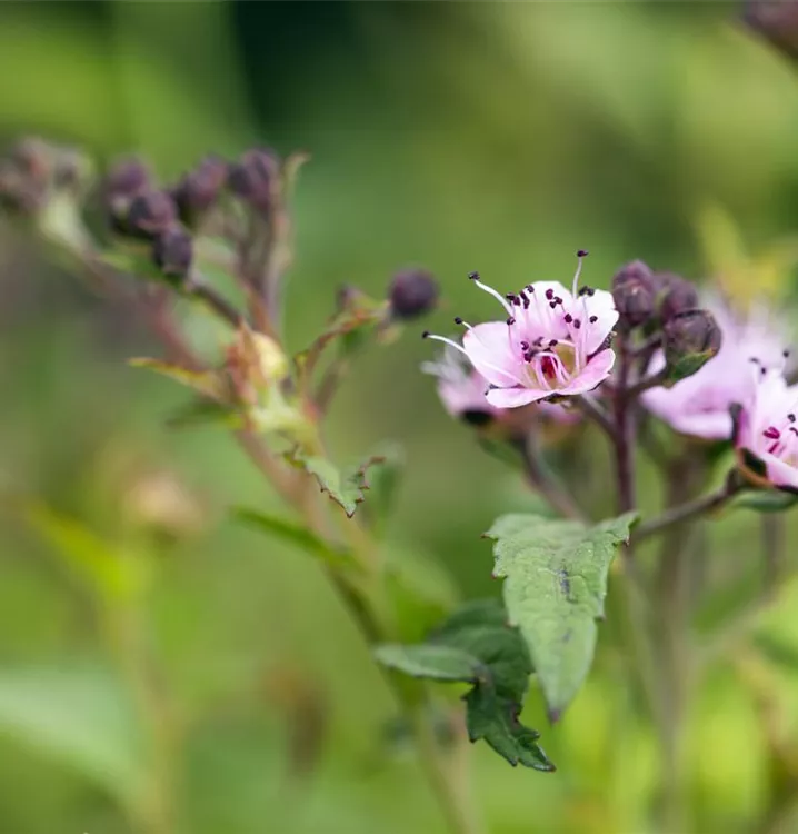 Die hellrosafarbenen Blüten erscheinen von Juni bis Juli.