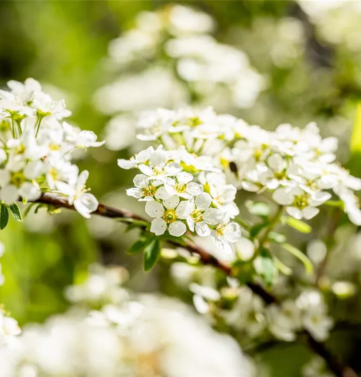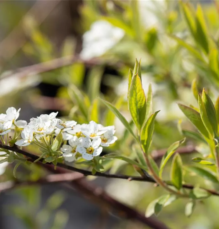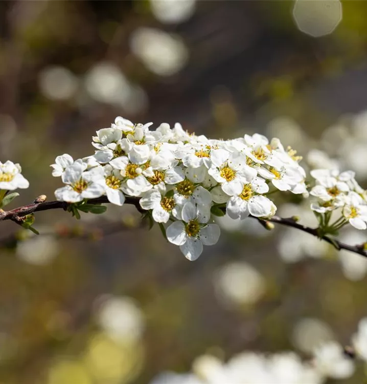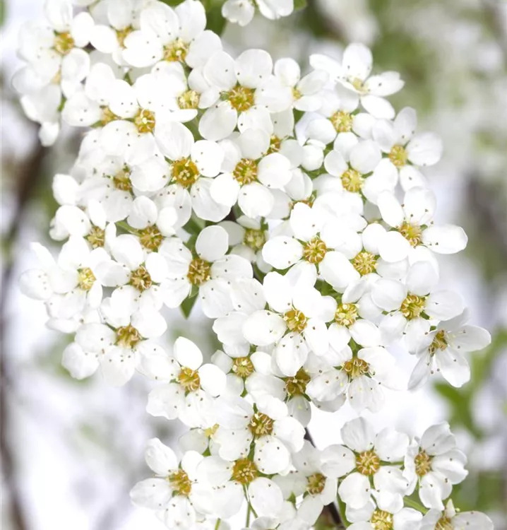Die Weiße Rispenspiere 'Grefsheim' (Spiraea x cinerea) ist ein lockerer, überhängender Strauch, der weiße, in Doldentrauben angeordnete Blüten mit einem angenehmen Duft hervorbringt. Sie erscheinen von Ende April bis Anfang Mai. An einem sonnigen bis halbschattigen Standort erreicht sie gewöhnlich eine Höhe von ca. 2 m und wird ca. 1,75 m breit. An den Boden stellt die Weiße Rispenspiere 'Grefsheim' keine besonderen Ansprüche.