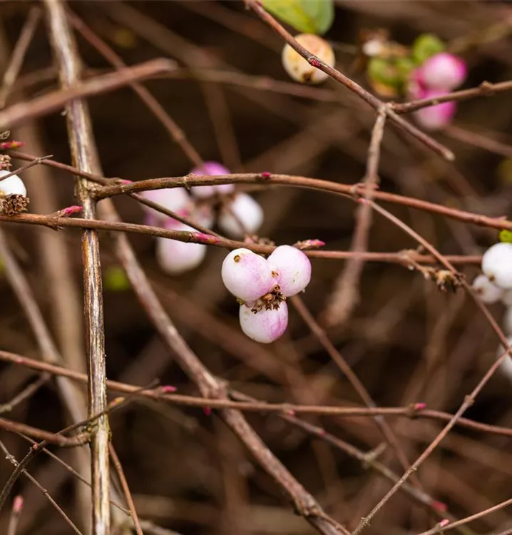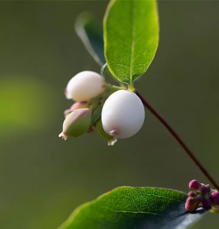 Besonders dekorativ sind die weißen Früchte von Symphoricarpos albus. Diese erscheinen ab November.