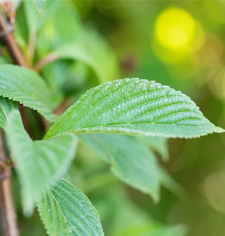 Die sommergrünen Blätter des Winterschneeballs sind mittelgrün.