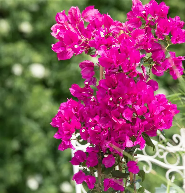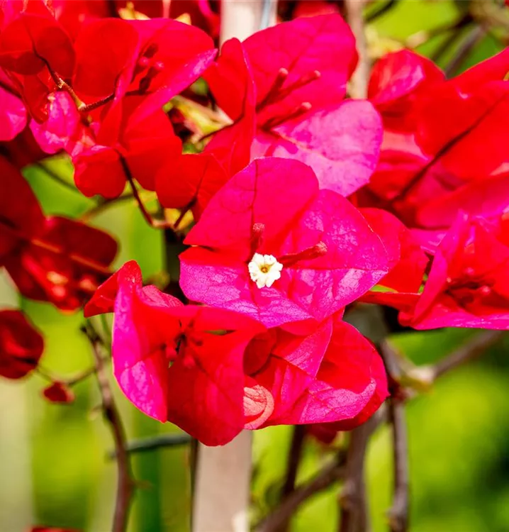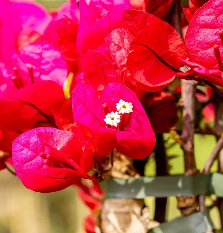 Die Drillingsblume (Bougainvillea) ist eine sehr beliebte Kübelpflanze. Ihre dekorativen Blüten sind sternförmig und erscheinen von Juli bis September. Verwenden Sie bevorzugt die spezielle Kübelpflanzenerde, denn sie verdichtet sich über längere Zeit nicht.