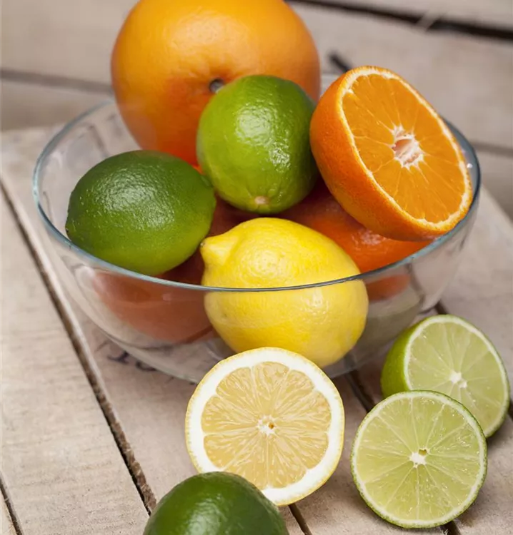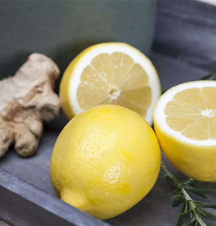 Die Zitrone (Citrus limon) ist eine sehr beliebte, immergrüne Kübelpflanze, deren gelben Früchte einen süß-säuerlichen, aromatischen Geschmack haben. Ihre dekorativen Blüten sind radförmig und erscheinen von Januar bis Dezember. Sie verströmen einen angenehmen Duft. Die dunkelgrünen Blätter sind eiförmig. Der Standort sollte möglichst sonnig sein. Eine durchlässige und kalkfreie Erde ist dabei ideal. Bei günstigen Bedingungen erreicht die Zitrone eine Höhe von ca. 2 m und wird bis zu 1,5 m breit.