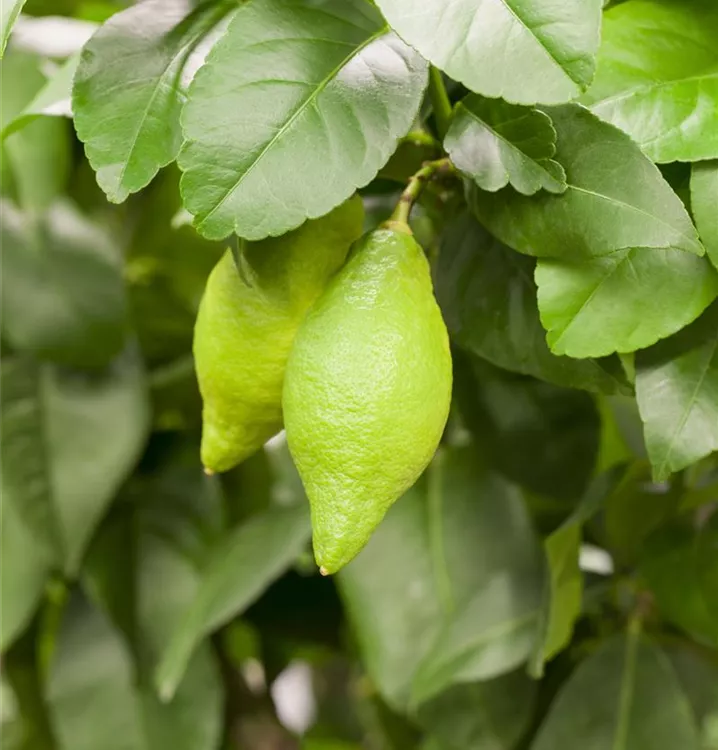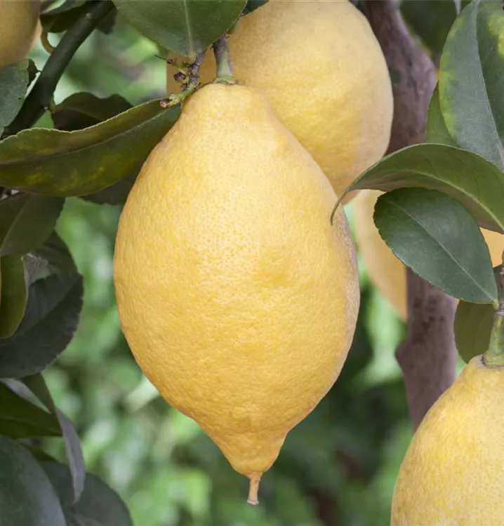 Besonders dekorativ sind die gelben Früchte von Citrus limon. Diese erscheinen ab Juli.