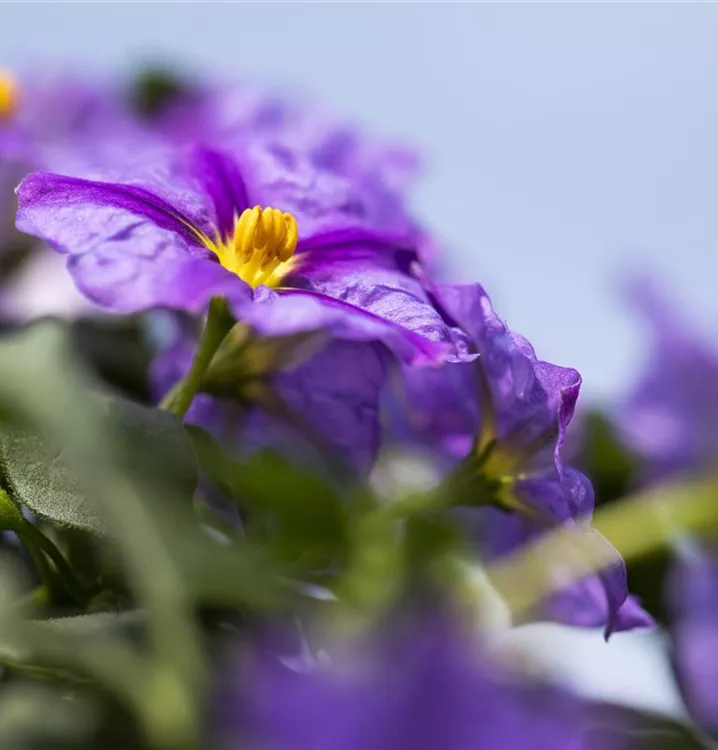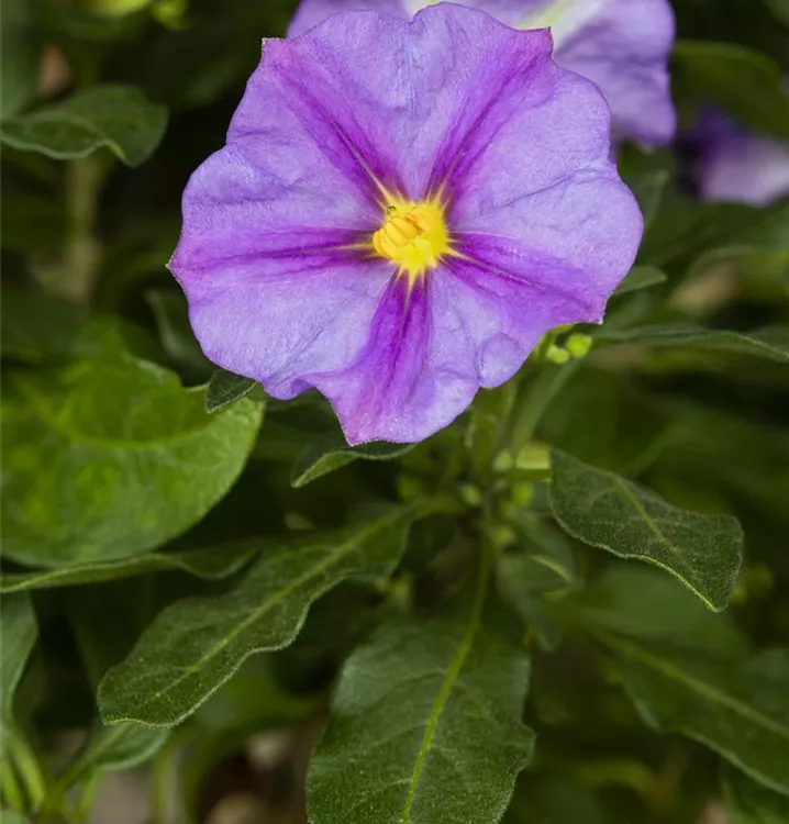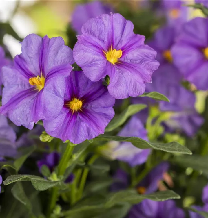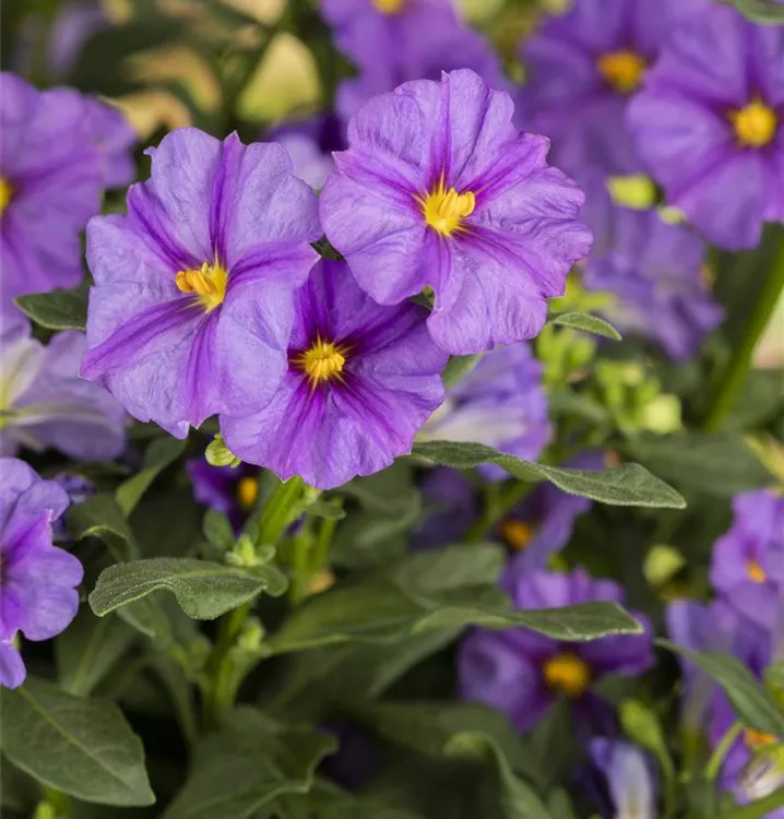 Solanum rantonnetii bildet sternförmige, violette Blüten ab Mai.