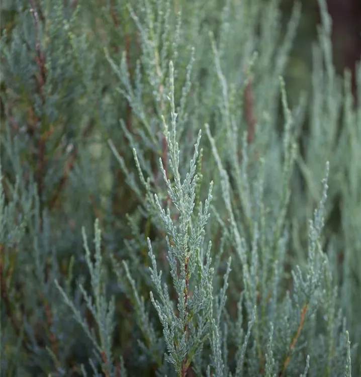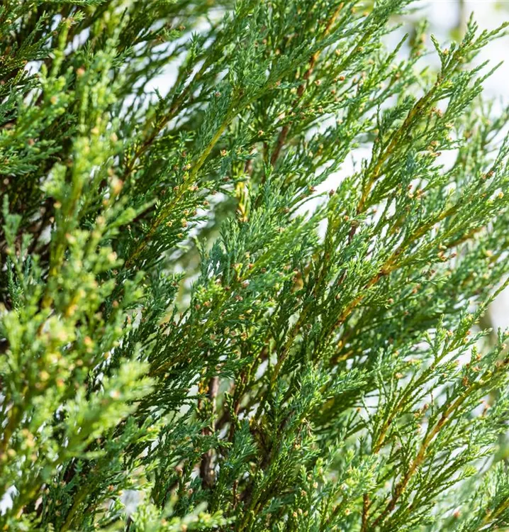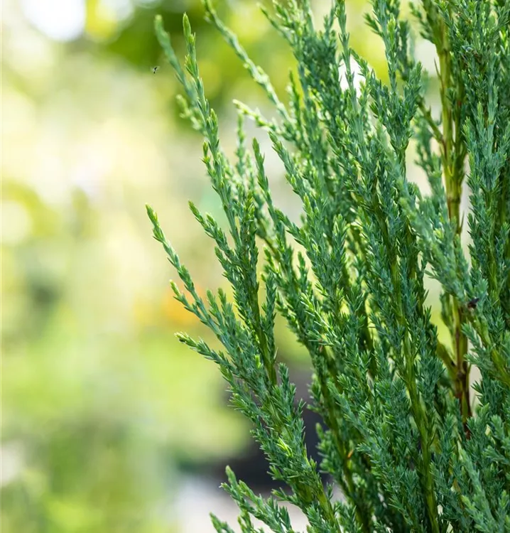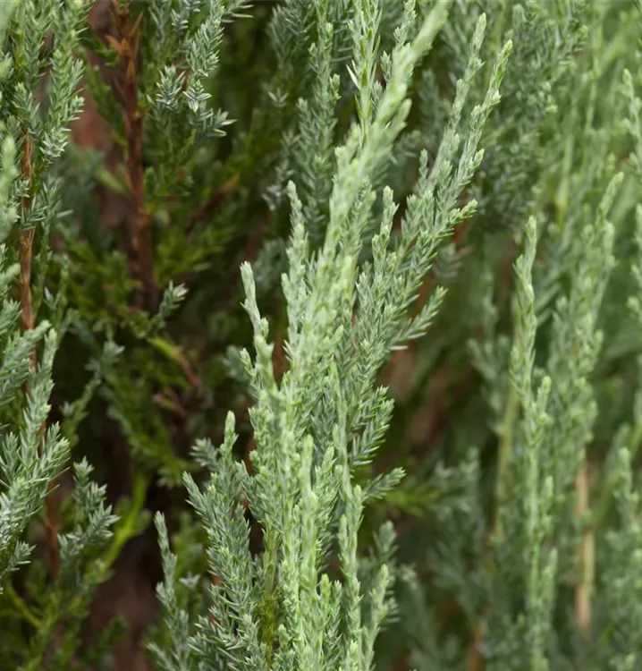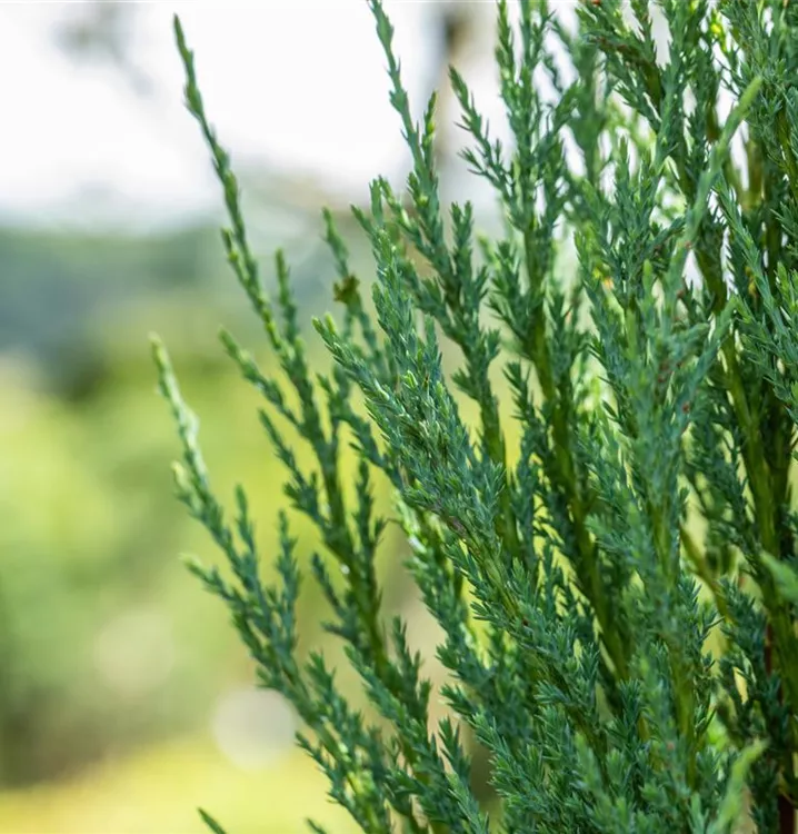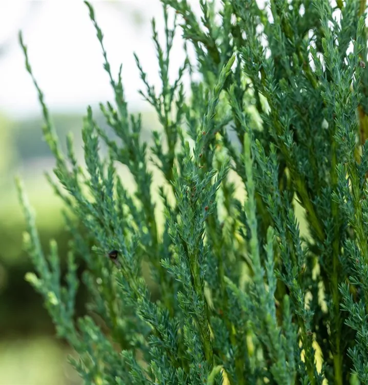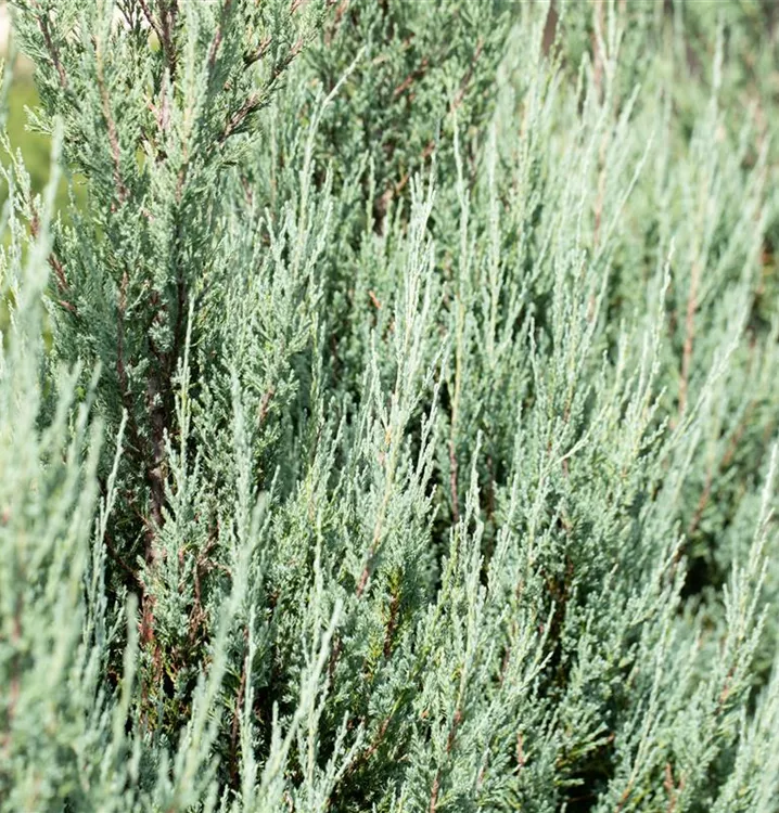 Der Virginische Wacholder 'Blue Arrow' ist immergrün. Seine Nadeln sind blau-grau, schuppenförmig.