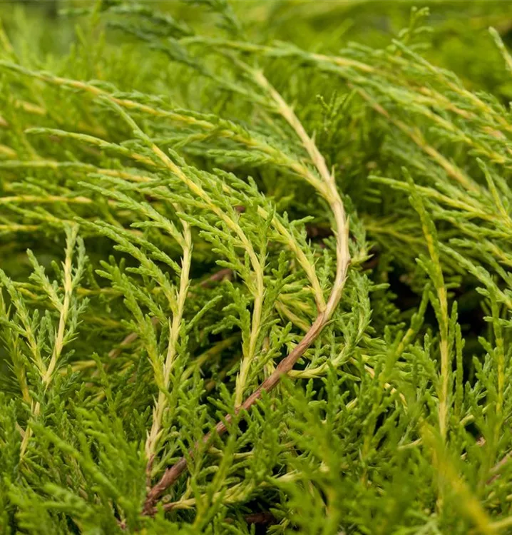 Der Pfitzer-Wacholder ist immergrün. Seine Nadeln sind blau-grün.