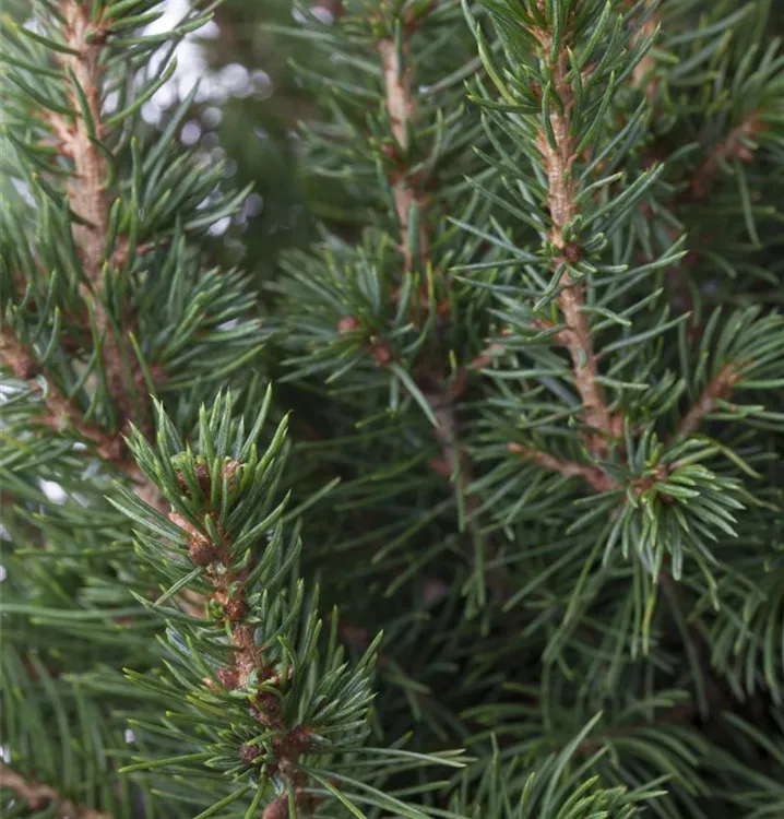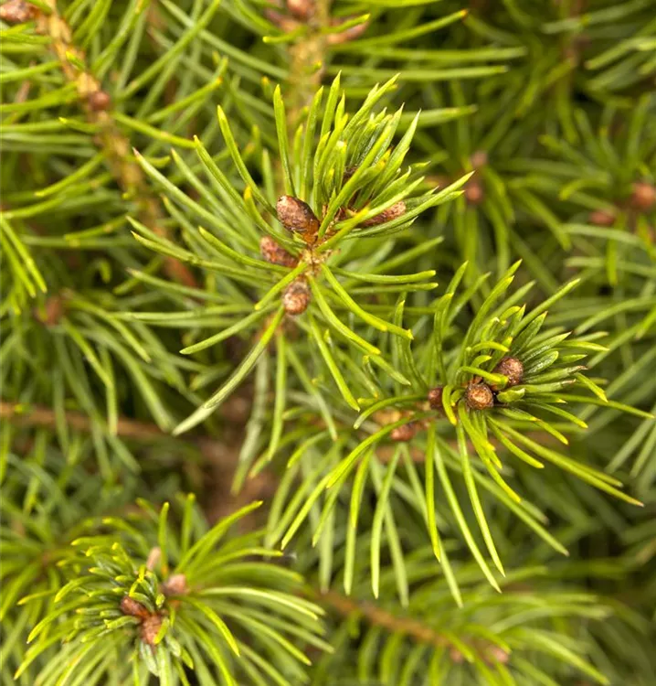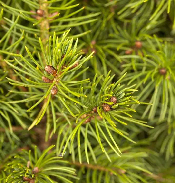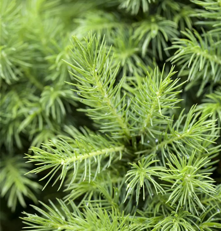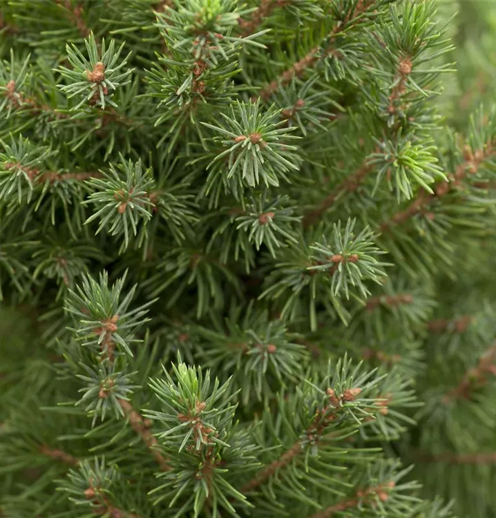 Die Zuckerhut-Fichte 'Conica' ist immergrün. Ihre Nadeln sind hellgrün, weich.