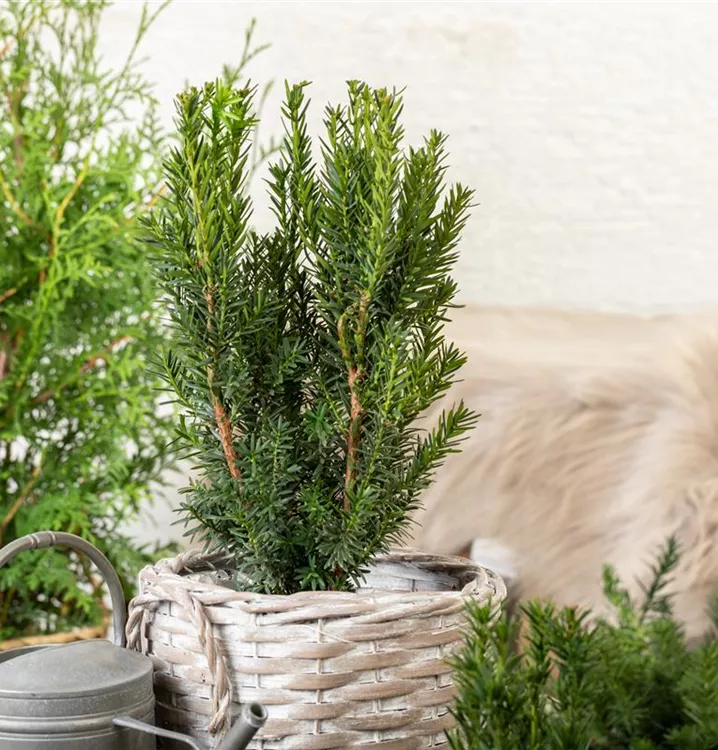 Die Eibe 'Hillii' (Taxus x media) ist ein Großstrauch, welcher aufrecht, schlank, malerisch wächst und gewöhnlich eine Höhe von ca. 5 m und eine Breite von ca. 3,5 m erreicht. Ihre nadelförmigen Blätter haben eine dunkelgrüne Färbung. Dieses Gehölz ist gut frostverträglich.Sie bevorzugt durchlässigen, nährstoffreichen Boden in sonniger bis halbschattiger Lage.