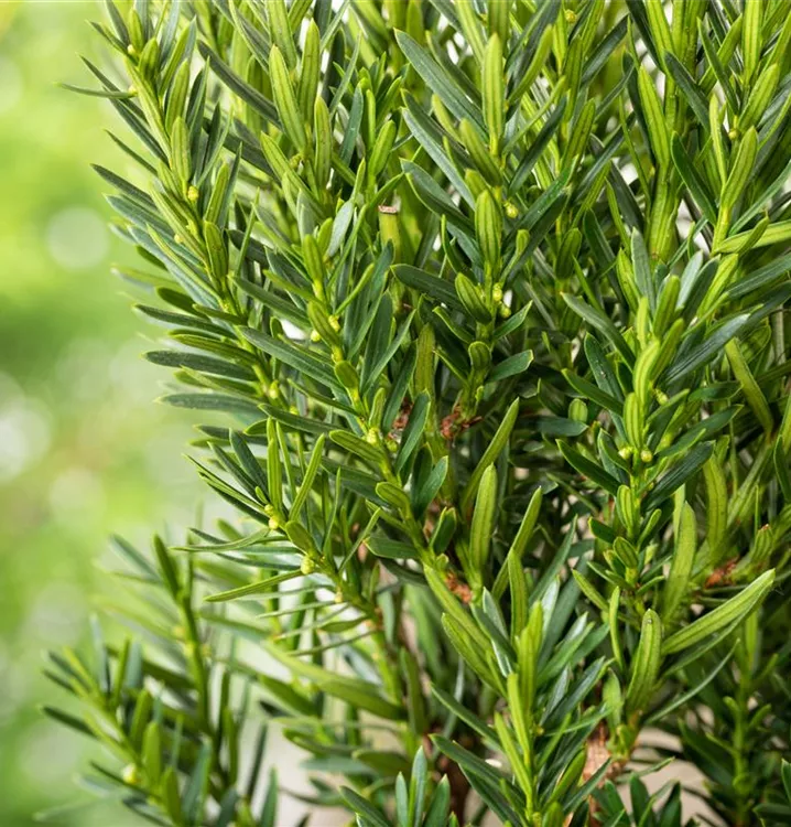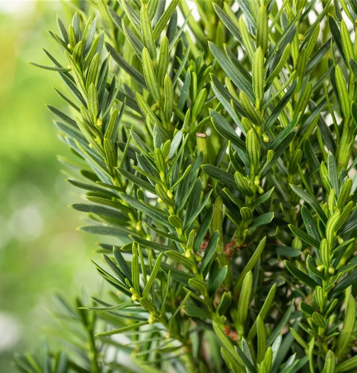 Die Eibe 'Hillii' ist immergrün. Ihre Nadeln sind dunkelgrün.