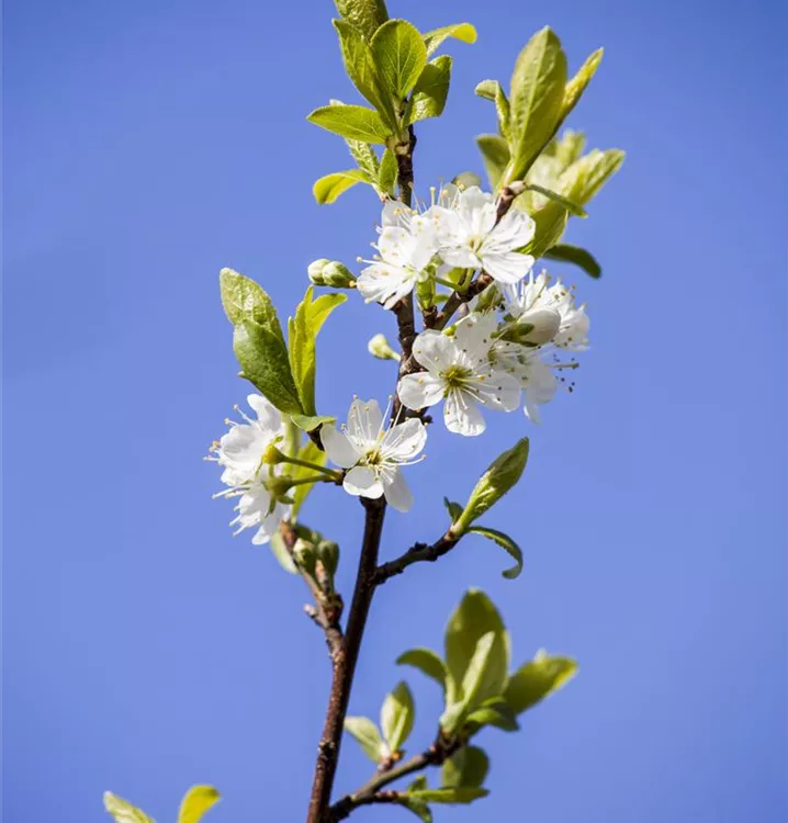 Mirabelle ist ein aufrecht und schlank wachsender Kleinbaum, der eine Höhe von 6 - 10 m und eine Breite von 2 - 5 m erreichen kann.