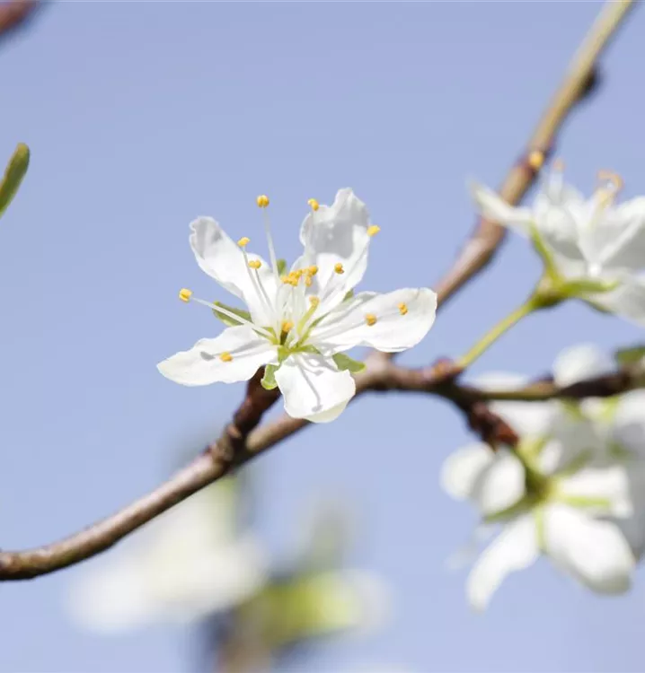 Prunus domestica subsp. syriaca bildet weiße Blüten ab März.