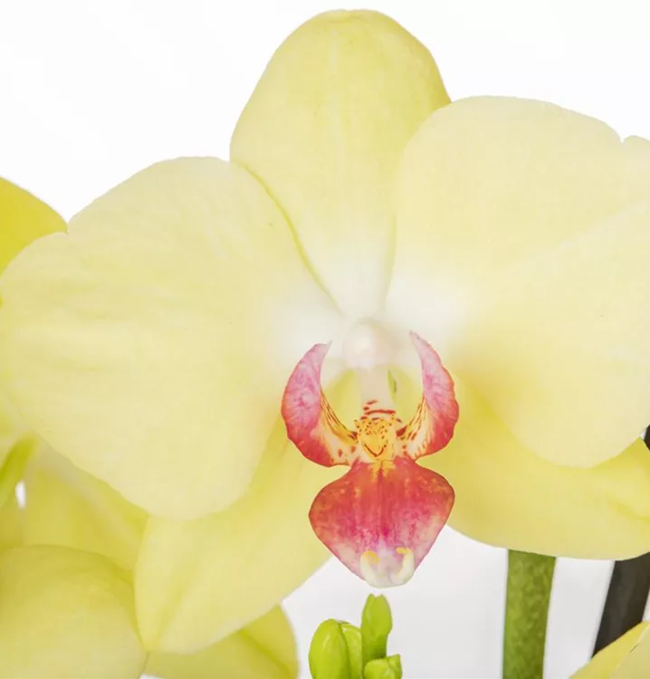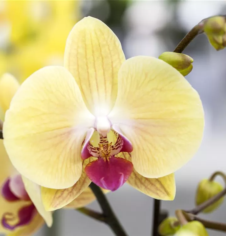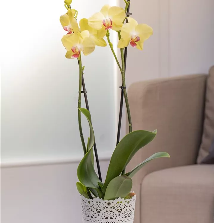Phalaenopsis, gelb bringt von Januar bis Dezember dekorative gelbe Blüten hervor.