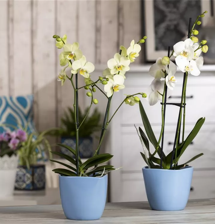 Die Schmetterlingsorchidee (Phalaenopsis) ist eine schöne, in verschiedenen Farben blühende Orchidee. Ihre lippenförmigen Blüten sind sehr dekorativ und erscheinen in Rispen von Januar bis Dezember. Für das optimale Wachstum sorgen ein heller Standort sowie ein spezielles Orchideen-Substrat.