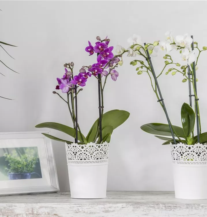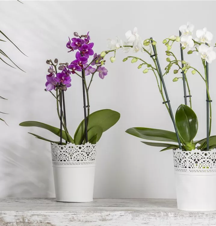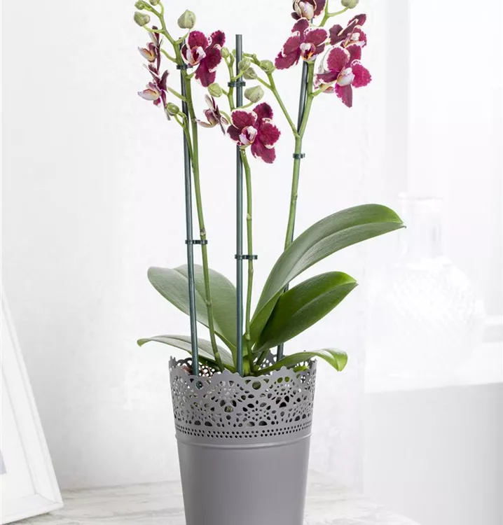 Die Kleinblumige Schmetterlingsorchidee (Phalaenopsis multiflora) ist eine schöne, in weiß, rosa, hellgelb, pink oder dunkelrot blühende Orchidee. Ihre lippenförmigen Blüten sind sehr dekorativ und erscheinen in Rispen von Januar bis Dezember. Mit ihrem aufrechten Wuchs wird sie bis zu 50 cm hoch und 50 cm breit. Für das optimale Wachstum sorgen ein heller Standort sowie eine möglichst durchlässige und lockere Erde.