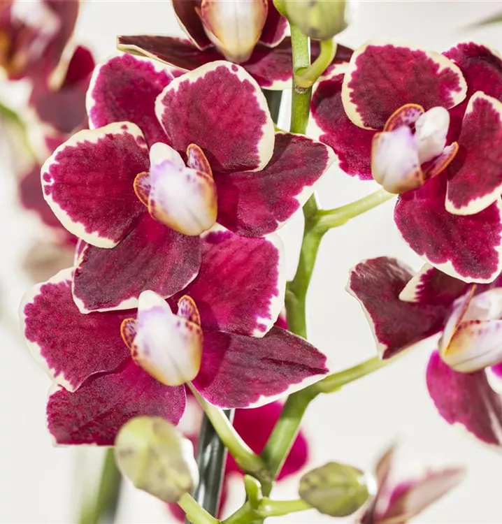 Die Schmetterlingsorchidee (Phalaenopsis) ist eine schöne, in verschiedenen Farben blühende Orchidee. Ihre lippenförmigen Blüten sind sehr dekorativ und erscheinen in Rispen von Januar bis Dezember. Für das optimale Wachstum sorgen ein heller Standort sowie ein spezielles Orchideen-Substrat.