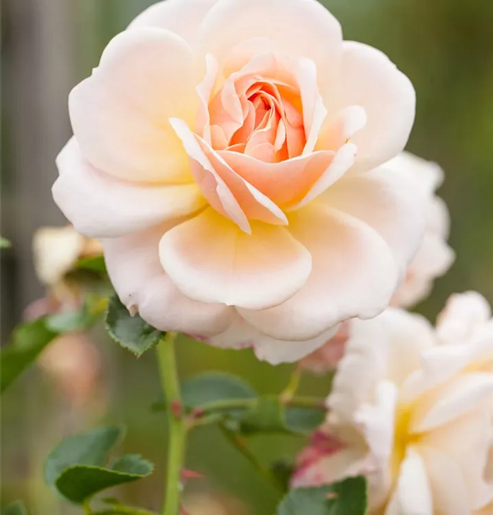 Die sommergrünen Blätter der Edelrose sind dunkelgrün, gefiedert, wechselständig.