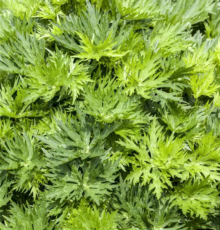 Die sommergrünen Blätter des Gewöhnlichen Eisenhuts sind dunkelgrün, tief geschlitzt.