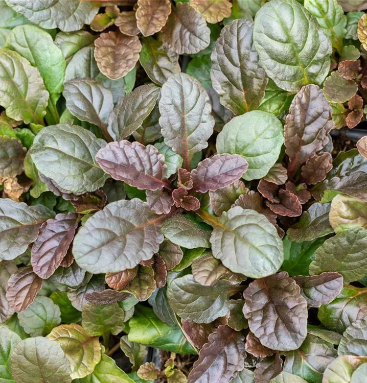 Der Rotblättrige Garten-Günsel 'Atropurpurea' (Ajuga reptans) ist eine kriechende wintergrüne Staude mit dekorativen, glänzenden, eiförmigen, bronzefarbenen Blättern. An einem sonnigen bis halbschattigen Standort mit durchlässigem, humosem, nährstoffreichem Boden erreicht er gewöhnlich eine Höhe von ca. 15 cm und wird ca. 25 cm breit. Der Rotblättrige Garten-Günsel 'Atropurpurea' ist gut frostverträglich.