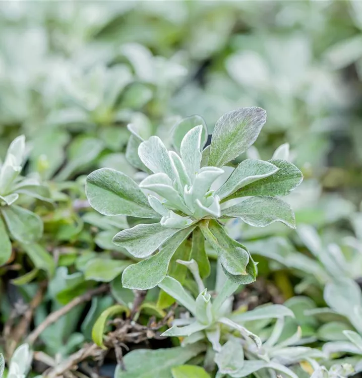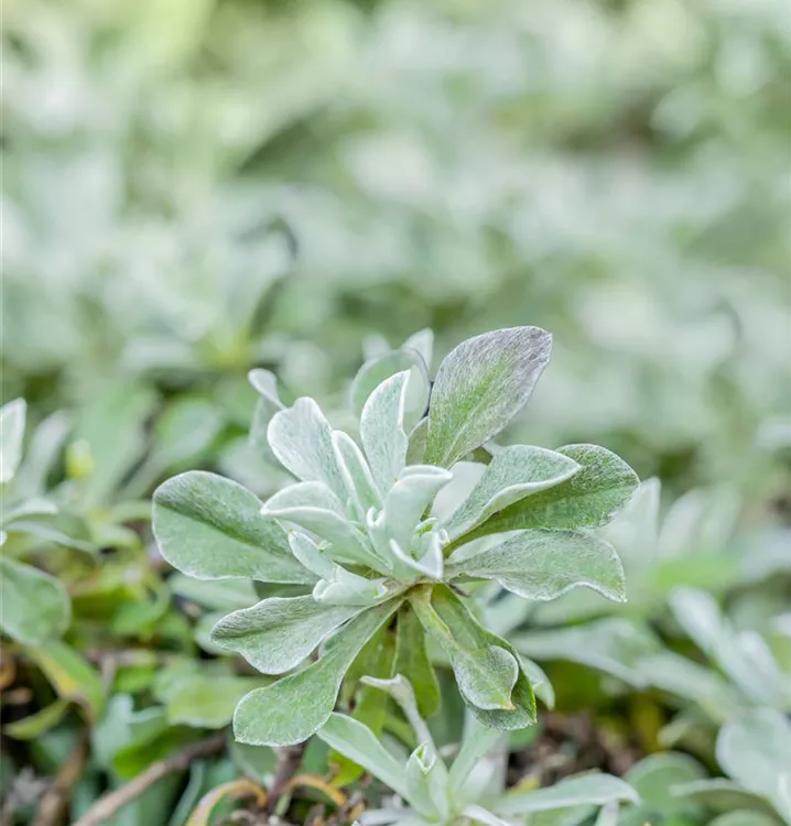 Die wintergrünen Blätter des Gewöhnlichen Katzenpfötchens sind grau-grün, lanzettlich.