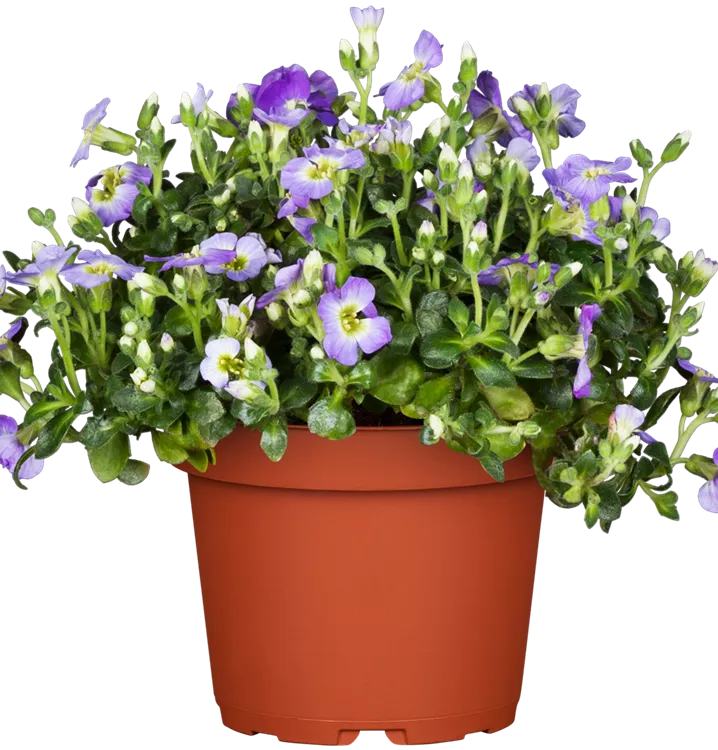 Aubrieta x cultorum bildet radförmige, blaue Blüten ab April.